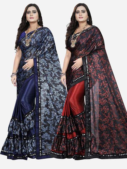 We offer high Quality Range of Printed Sarees that is Designs by our team of Creative Professionals and at the same time perfect mix of modern patterns and contemporary designs of ethnic collection. Look stunningly beautiful in this lovely sari that is decorated with intricately Lycra ruffles. Matching blouse is available to add the glam. There might be color variation due to screen resolution and digital photography. This sari is an ideal for Occasions like casual, traditional, party wear, festival, wedding...