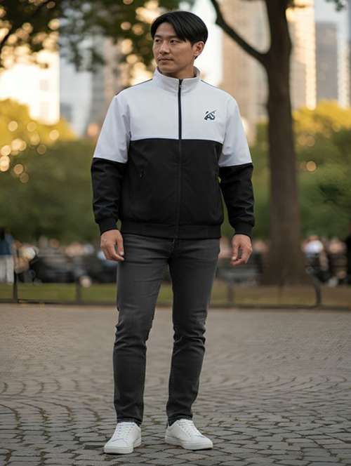 - » men color block long sleeve insulator bomber jacket