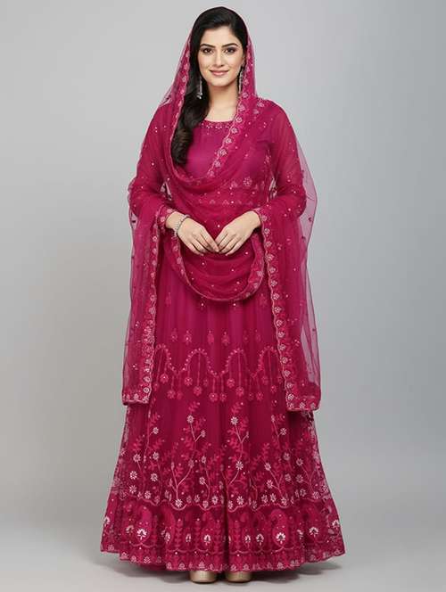 - These attractive gowns come in fit & flare made of net fabrics that can surely garner you lots of compliments when you wear it.