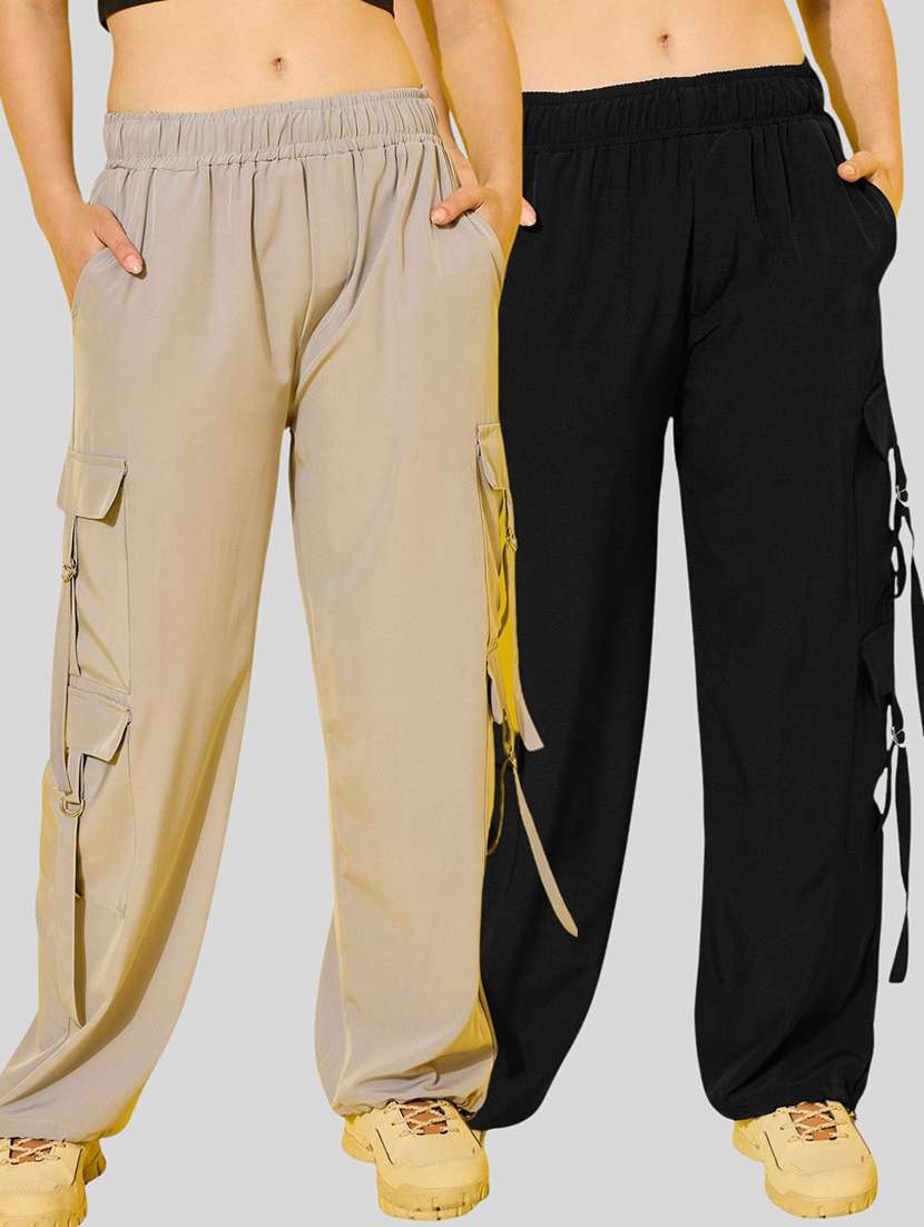 women pack of 2 solid mid rise cargo - 22187221 - Very Small Image - 1