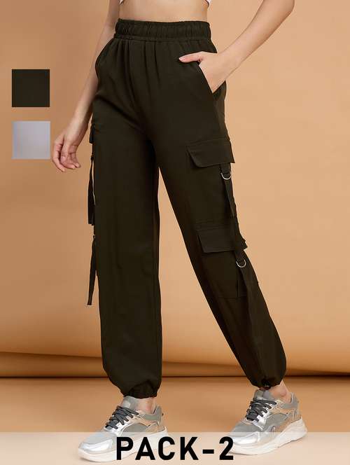 women pack of 2 solid mid rise cargo