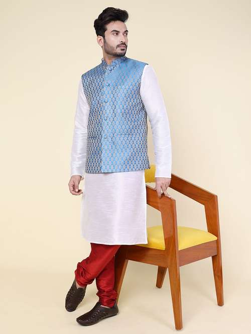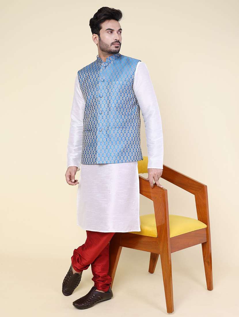 - » men solid mandarin neck kurta pyjama with jacket ethnic wear set