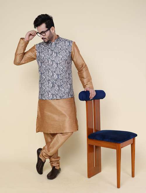 - » men solid mandarin neck kurta pyjama with jacket ethnic wear set