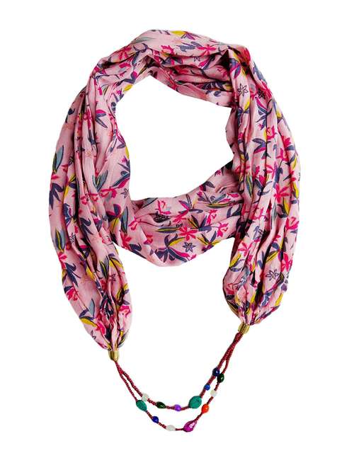 JVNINE Handmade Viscose Scarf with Stylish Indian Jewellery, Fashion Beads Scarf/Muffler, Traditional Beads Necklace with Stole/Wrap Scarves, Printed Design Dupatta with Pendant for Girls & Women
