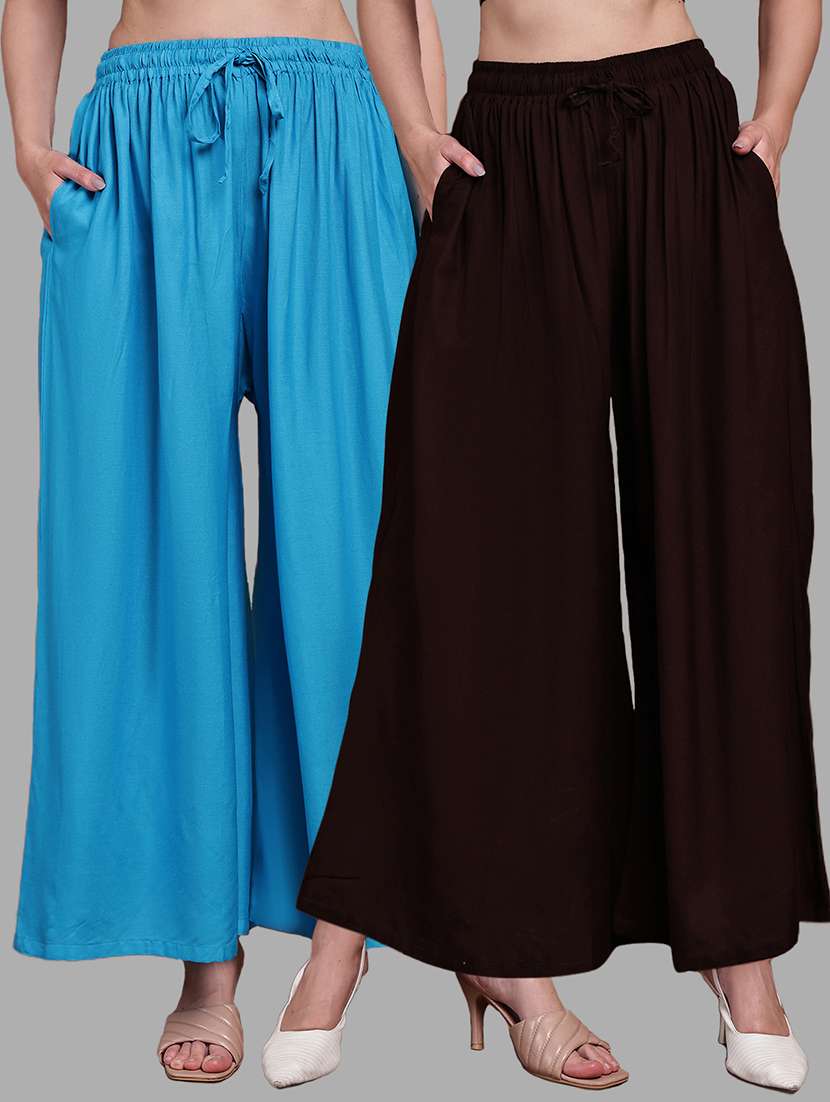 Upgrade your collection of warm-weather staples with these top-notch Brown and Ferozi Pocket Palazzos combo's by Valles365. Pair them with a flowy tee and lace-up sandals for a super chic look.