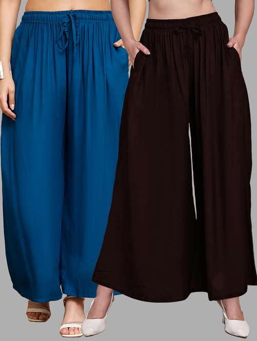 Upgrade your collection of warm-weather staples with these top-notch Brown and Blue Plus Pocket Palazzos combo's by Valles365. Pair them with a flowy tee and lace-up sandals for a super chic look.