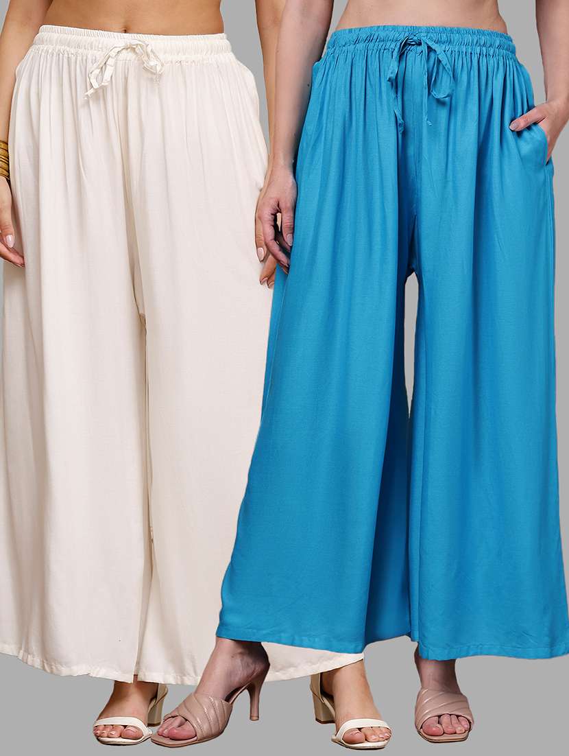 - » women pack of 2 solid high rise flared palazzo