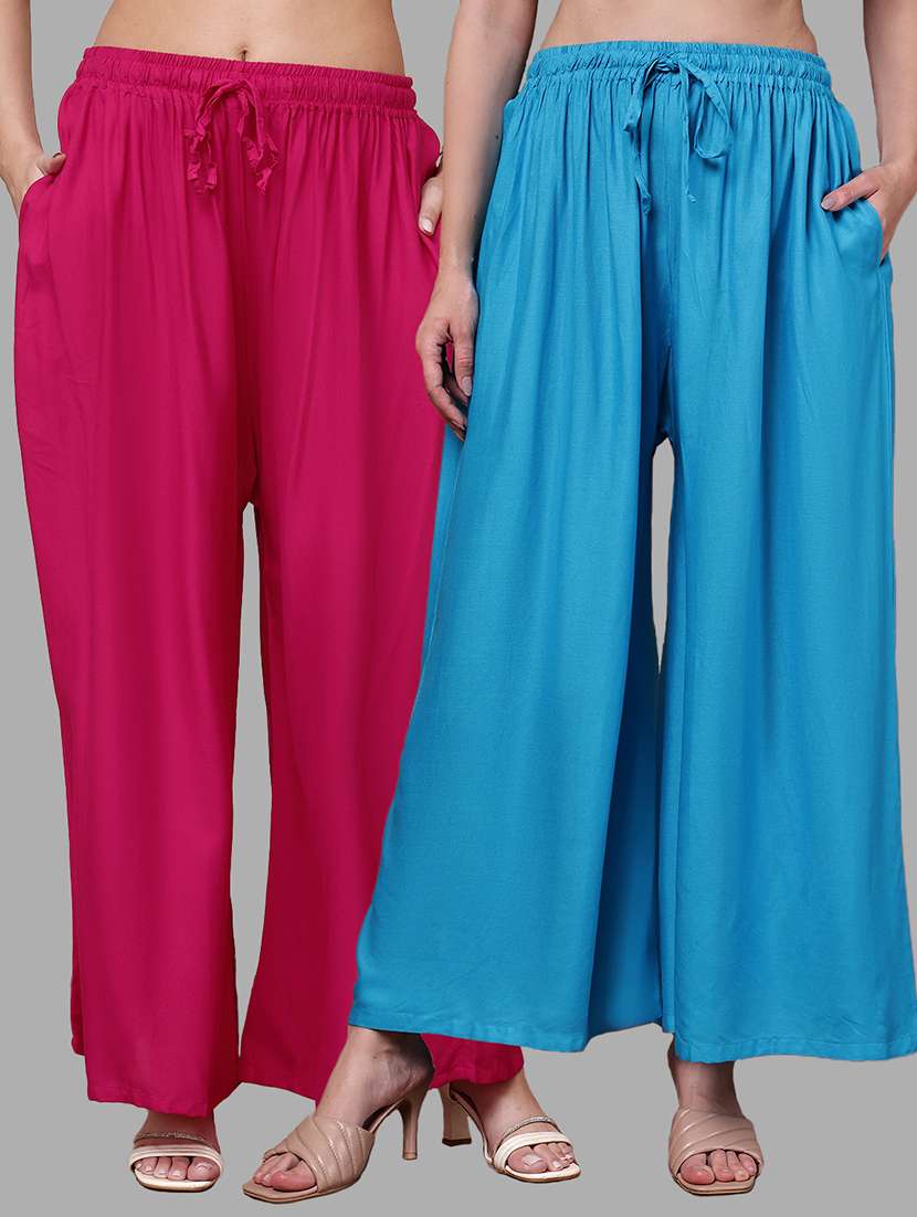 Upgrade your collection of warm-weather staples with these top-notch Ferozi and Pink Plus Pocket Palazzos combo's by Valles365. Pair them with a flowy tee and lace-up sandals for a super chic look.