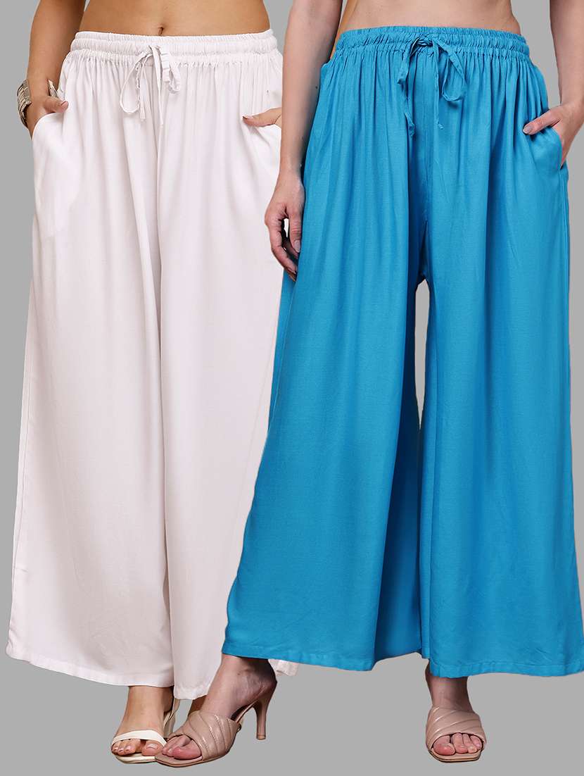 Upgrade your collection of warm-weather staples with these top-notch Ferozi and White Plus Pocket Palazzos combo's by Valles365. Pair them with a flowy tee and lace-up sandals for a super chic look.