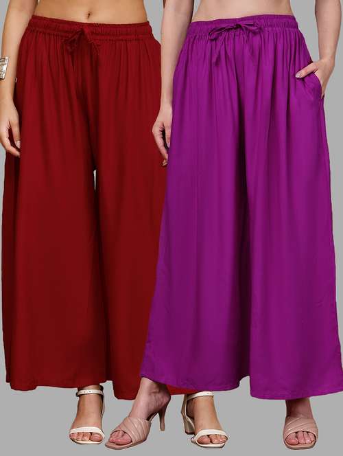 Upgrade your collection of warm-weather staples with these top-notch Magenta and Maroon Plus Pocket Palazzos combo's by Valles365. Pair them with a flowy tee and lace-up sandals for a super chic look.