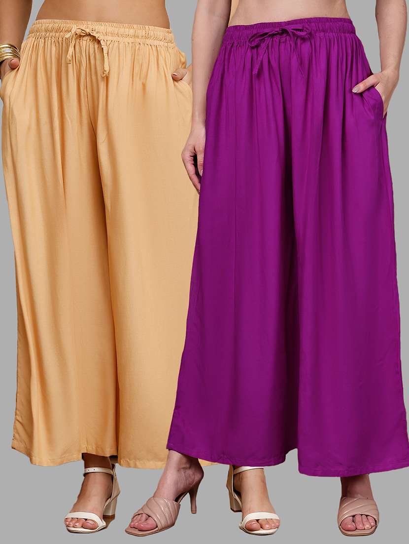 Upgrade your collection of warm-weather staples with these top-notch Magenta and Beige Pocket Palazzos combo's by Valles365. Pair them with a flowy tee and lace-up sandals for a super chic look.