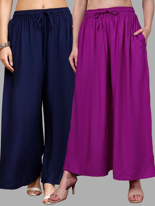 Upgrade your collection of warm-weather staples with these top-notch Magenta and Navy Blue Plus Pocket Palazzos combo's by Valles365. Pair them with a flowy tee and lace-up sandals for a super chic look.