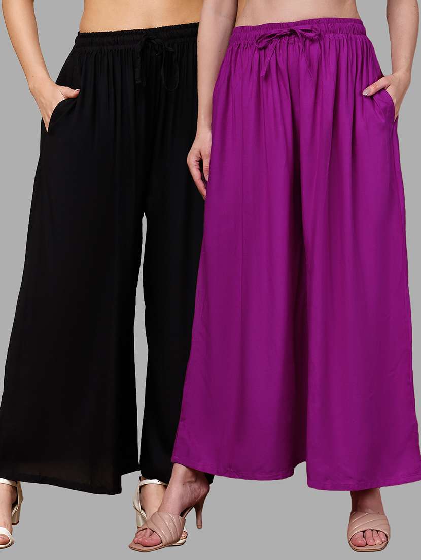 Upgrade your collection of warm-weather staples with these top-notch Magenta and Black Plus Pocket Palazzos combo's by Valles365. Pair them with a flowy tee and lace-up sandals for a super chic look.