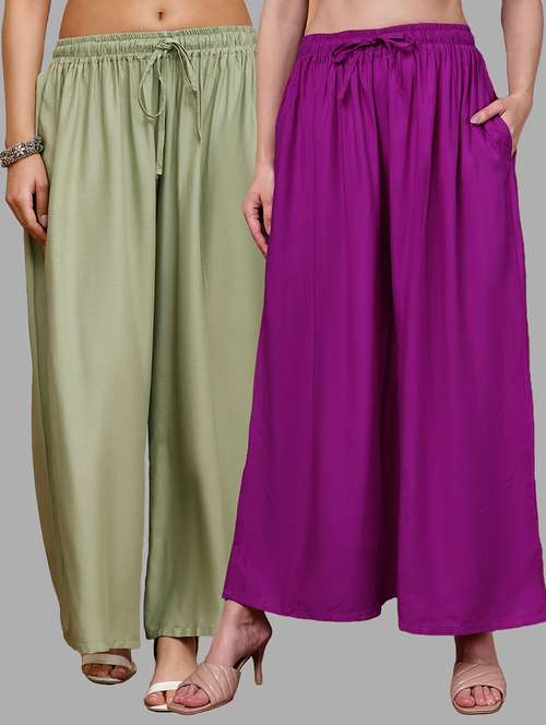 Upgrade your collection of warm-weather staples with these top-notch Magenta and Pista Green Plus Pocket Palazzos combo's by Valles365. Pair them with a flowy tee and lace-up sandals for a super chic look.