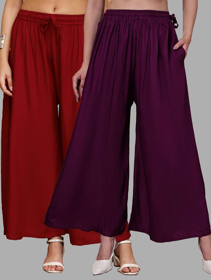 Upgrade your collection of warm-weather staples with these top-notch Purple and Maroon Pocket Palazzos combo's by Valles365. Pair them with a flowy tee and lace-up sandals for a super chic look.