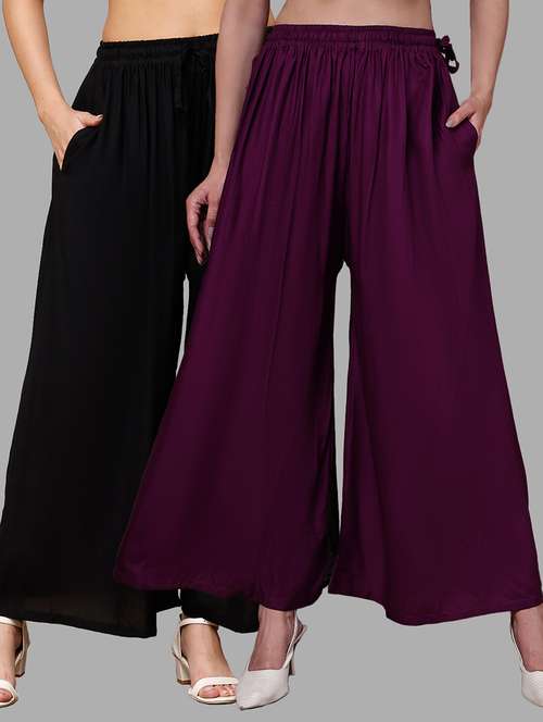 Upgrade your collection of warm-weather staples with these top-notch Purple and Black Plus Pocket Palazzos combo's by Valles365. Pair them with a flowy tee and lace-up sandals for a super chic look.