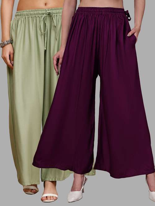 Upgrade your collection of warm-weather staples with these top-notch Purple and Pista Green Pocket Palazzos combo's by Valles365. Pair them with a flowy tee and lace-up sandals for a super chic look.