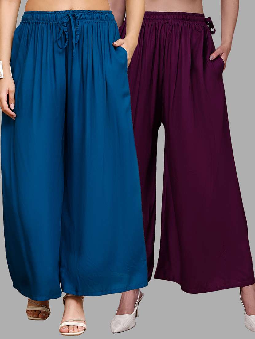 Upgrade your collection of warm-weather staples with these top-notch Purple and Blue Plus Pocket Palazzos combo's by Valles365. Pair them with a flowy tee and lace-up sandals for a super chic look.