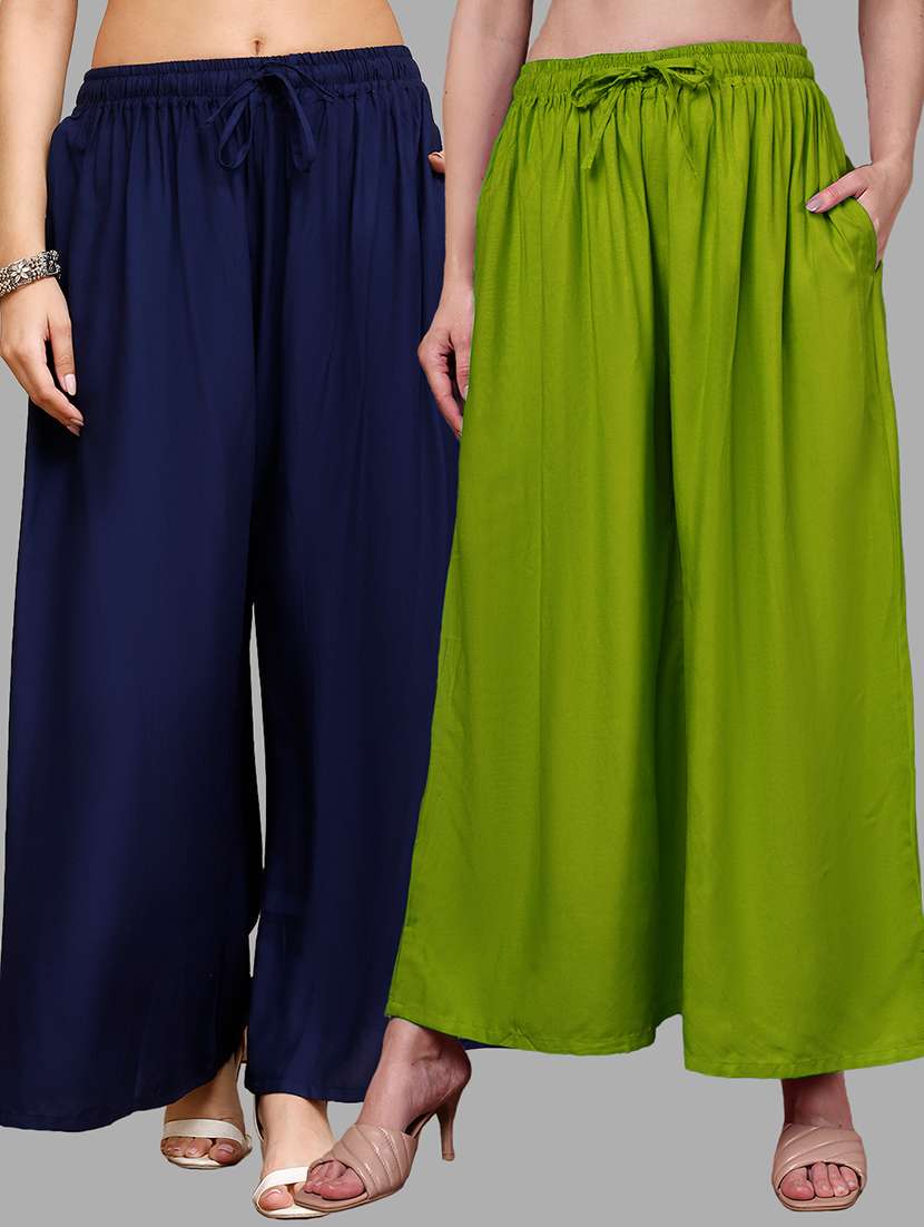 Upgrade your collection of warm-weather staples with these top-notch Light Green and Navy Blue Pocket Palazzos combo's by Valles365. Pair them with a flowy tee and lace-up sandals for a super chic look.
