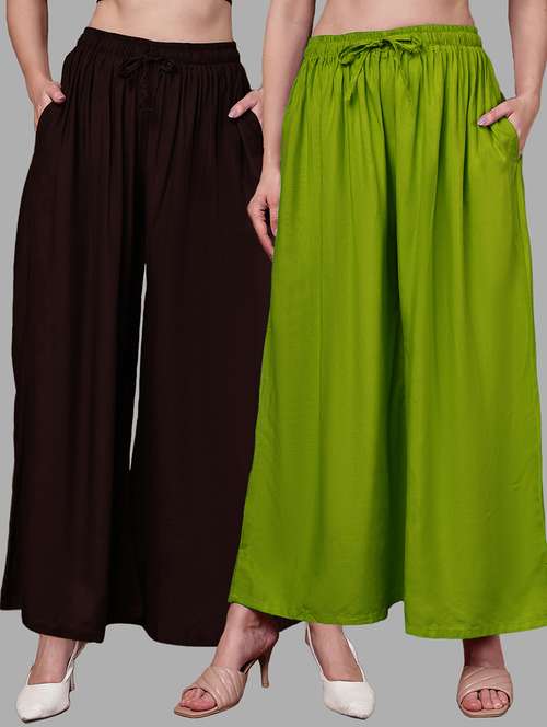 Upgrade your collection of warm-weather staples with these top-notch Light Green and Brown Pocket Palazzos combo's by Valles365. Pair them with a flowy tee and lace-up sandals for a super chic look.
