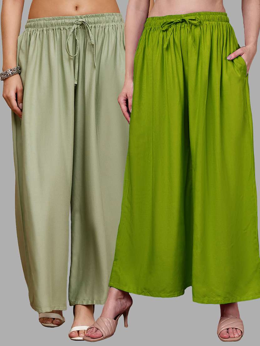 Upgrade your collection of warm-weather staples with these top-notch Light Green and Pista Green Pocket Palazzos combo's by Valles365. Pair them with a flowy tee and lace-up sandals for a super chic look.