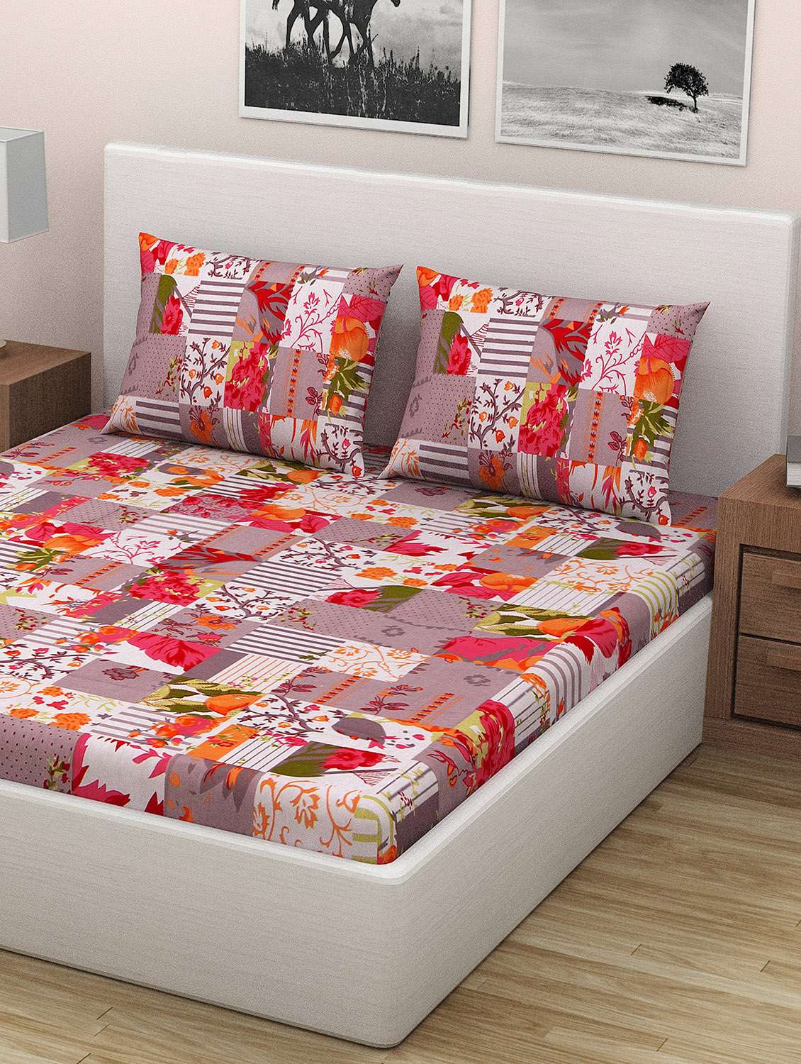 - » 100% cotton double bed sheet with 2 pillow covers