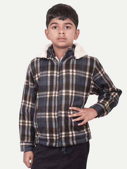 boys multi colored checked jacket