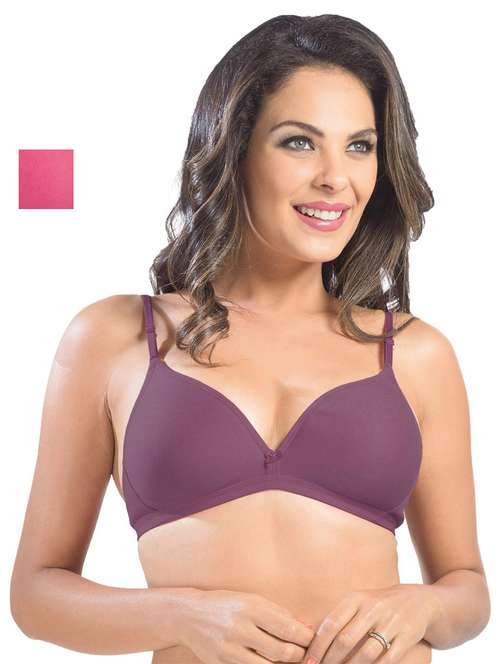 Wire-free for comfort and support. 3/4th coverage for maximum support and no spillage from top and sides. Wide-High Centre panel for support & shaping. Moulded cups for fine shaping & nipple coverage. 2 row varying column hook & eye back closure. Cups constructed with a Double layer of fabric. T-shirt bra has smooth moulded & seamless cups for everyday smooth finish.