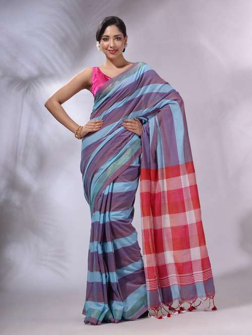 Look glamorous and alluring in this red matka silk handwoven saree. It has plain all over with zari and the borders have geometric patterns.