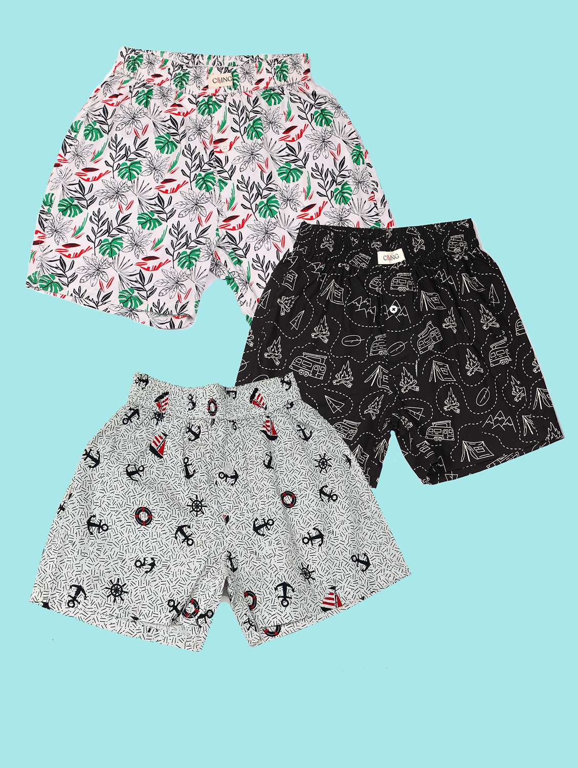 Keep your little one cool, comfy, and stylish with this Pack of 3 Boys Cotton Printed Boxer Shorts. Crafted from soft and breathable cotton fabric, these kids boxer shorts are gentle on the skin and perfect for everyday wear. Featuring fun and vibrant prints, they’re ideal as boys innerwear shorts, sleepwear, or casual lounge shorts. The elastic waistband ensures a snug fit, while the relaxed design gives freedom of movement all day long. Whether it's a fun day at home or bedtime, these multicolor boys boxer shorts are a must-have in every kid's wardrobe.
