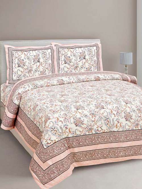- » pure cotton paisley floral ethnic peach border jaipuri double bedsheet