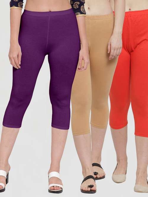 pack of 3 multi colored capri leggings