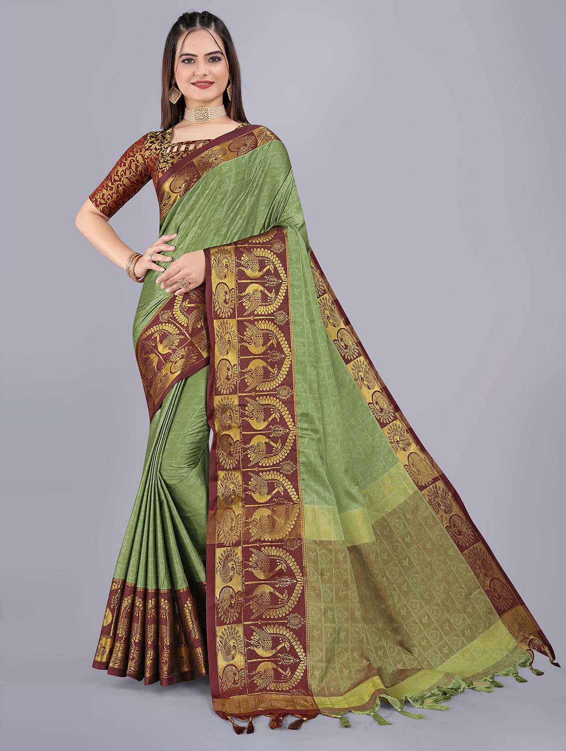 women green self design zari bordered saree with blouse - 21315219 - Very Small Image - 1