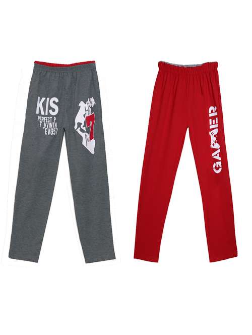 Sweet Angel Charcoal:Red pack of 2 track pant in 100% cotton fabric for Boys