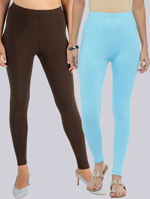 Upgrade your collection with these Solid Leggings combo ( Brown & Light Blue ) by Valles365. Pair them with a flowy tee and lace-up sandals for a super chic look.