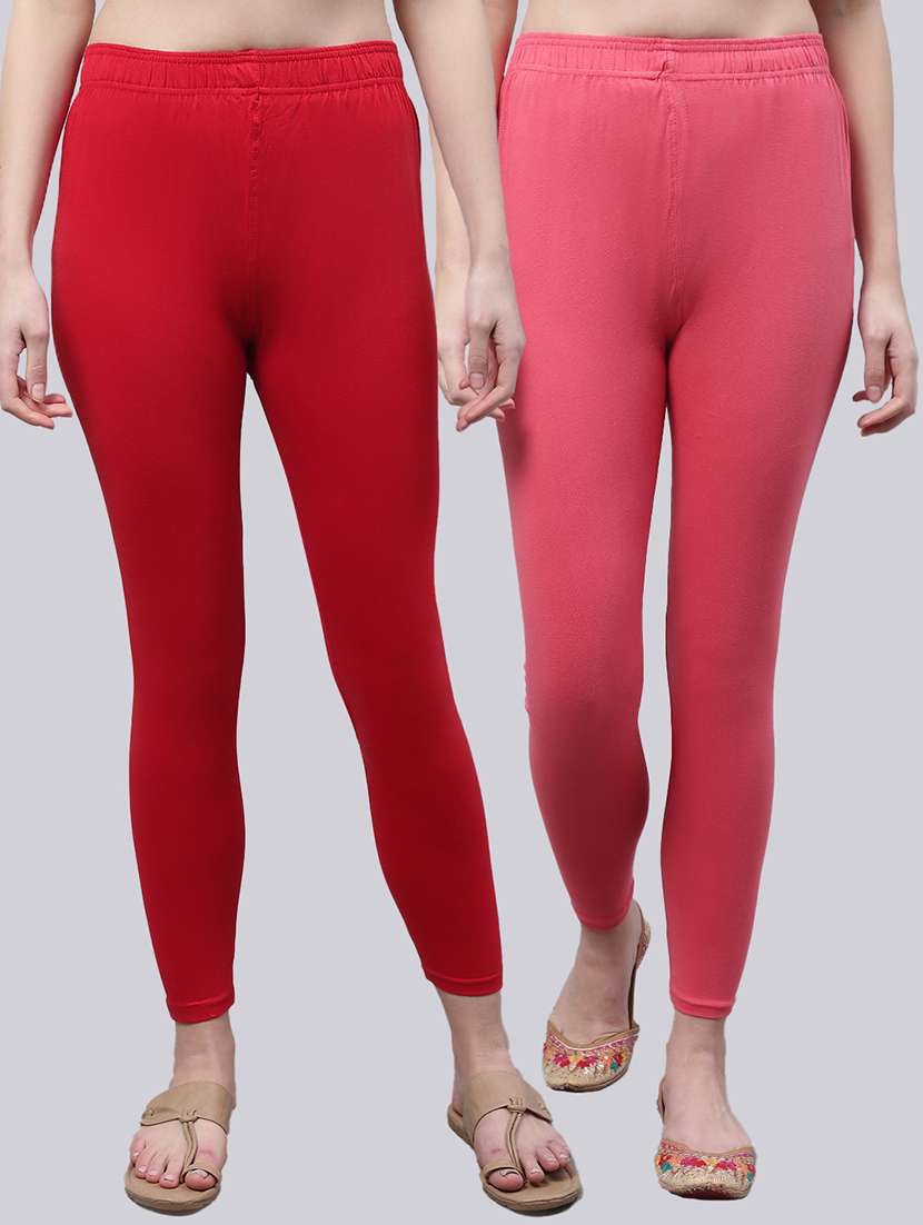 Upgrade your collection with these Solid Leggings combo ( Red & Coral Pink ) by Valles365. Pair them with a flowy tee and lace-up sandals for a super chic look.