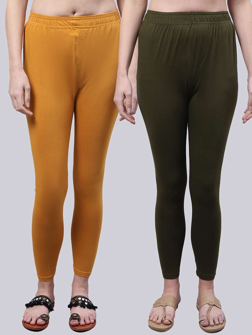 Upgrade your collection of warm-weather staples with these Solid Mustard and olive Leggings combo by Valles365. Pair them with a flowy tee and lace-up sandals for a super chic look.