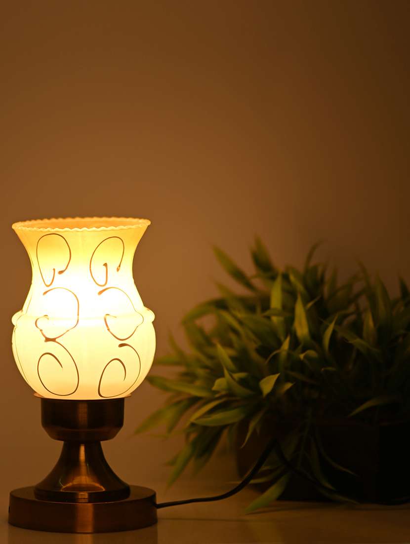 designer led compatible table lamp with decorated glass shade