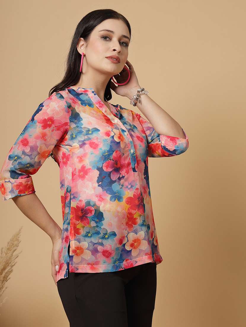 women mandarin neck printed straight kurti