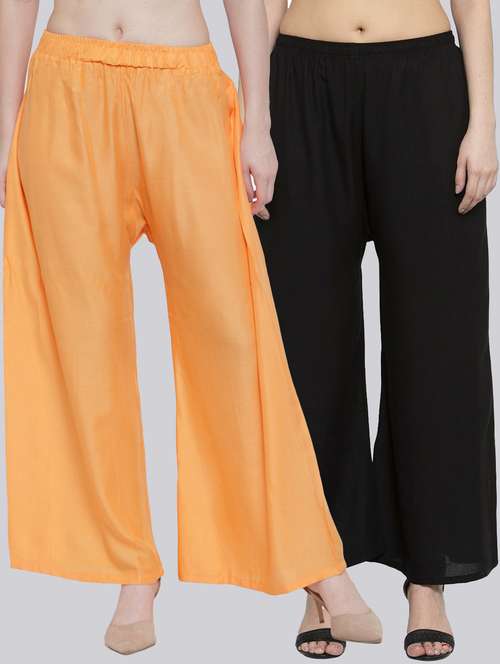 Pack of 2 Flared Women Light Orange and Black Viscose Rayon Palazzo