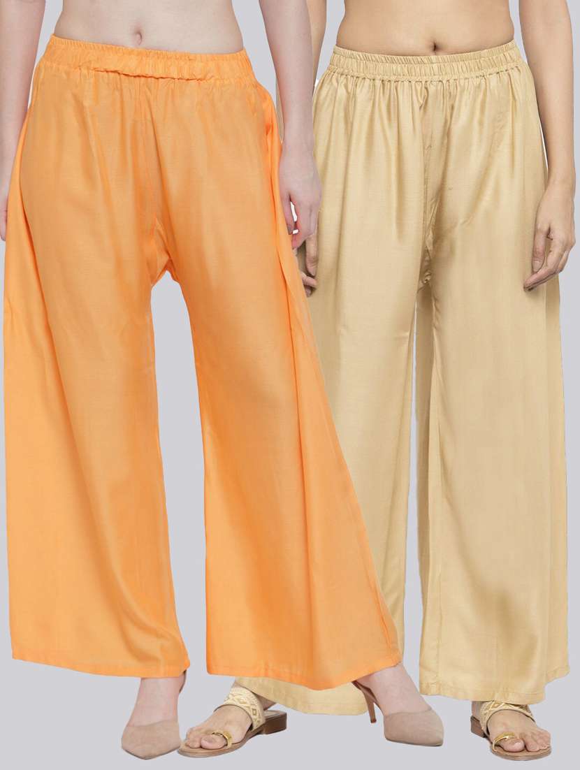 Pack of 2 Flared Women Light Orange and Beige Viscose Rayon Palazzo