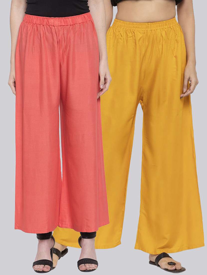Pack of 2 Flared Women Mustard and Peach Viscose Rayon Palazzo
