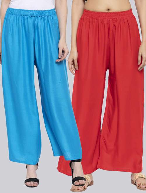 Pack of 2 Flared Women Red and Ferozi Viscose Rayon Palazzo