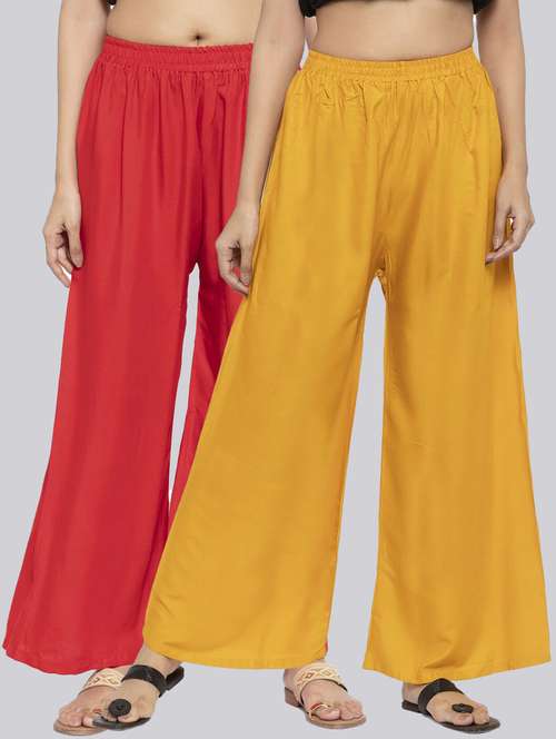 Pack of 2 Flared Women Mustard and Red Viscose Rayon Palazzo