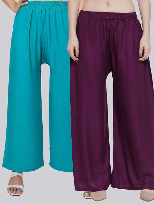 Pack of 2 Flared Women Purple and Turquoise Blue Viscose Rayon Palazzo