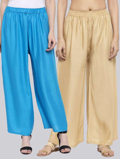Pack of 2 Flared Women Ferozi and Beige Viscose Rayon Palazzo