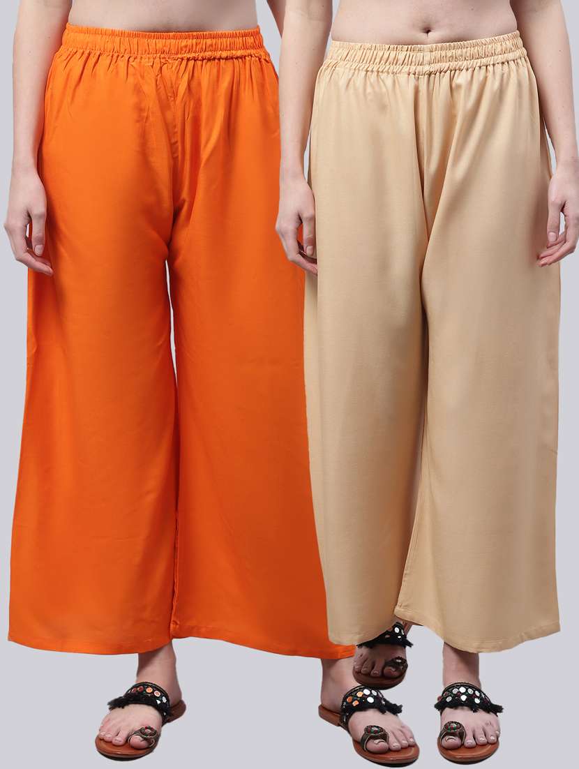Pack of 2 Flared Women Orange and Beige Viscose Rayon Palazzo