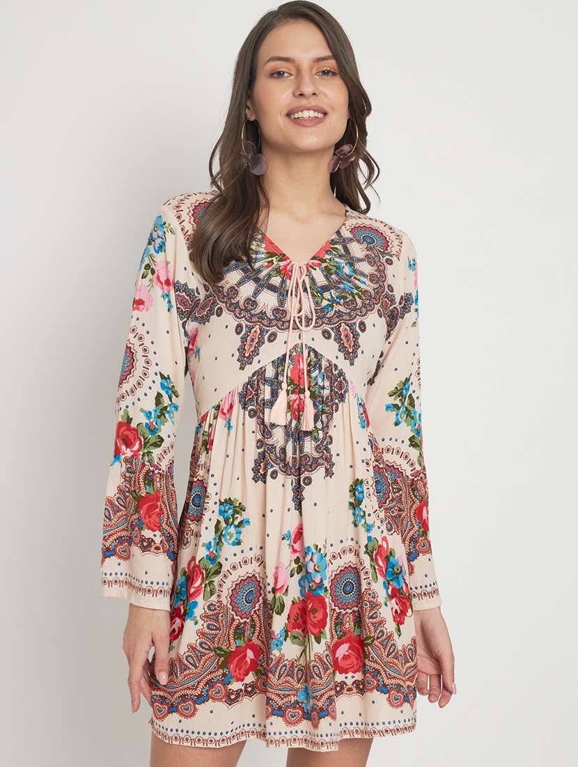 cream rayon fit & flare dress