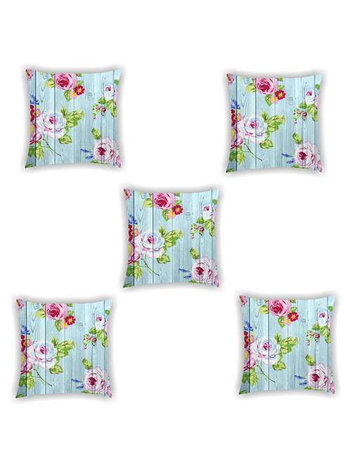 blue floral print satin cushion cover (set of 5)