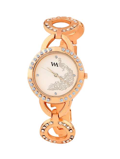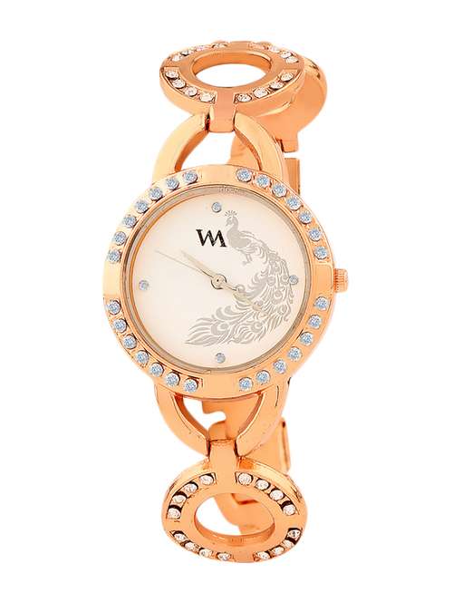 - » watch me white dial rose gold metal watch for women and girls wmal-146
